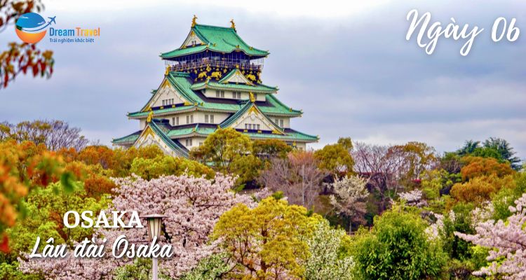 🌸 Lâu đài Osaka: Nguy nga, đồ sộ nằm trong khu thành cổ nổi tiếng bậc nhất Nhật Bản với những chi tiết mạ vàng và màu ngói xanh ngọc. Được xây dựng vào năm 1583 của gia tộc Toyotomi, lâu đài Osaka là biểu tượng của thành phố Osaka (chụp ảnh bên ngoài)