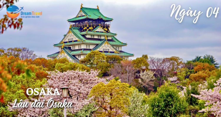 🌸 Lâu đài Osaka: Nguy nga, đồ sộ nằm trong khu thành cổ nổi tiếng bậc nhất Nhật Bản với những chi tiết mạ vàng và màu ngói xanh ngọc. Được xây dựng vào năm 1583 của gia tộc Toyotomi, lâu đài Osaka là biểu tượng của thành phố Osaka (chụp ảnh bên ngoài).