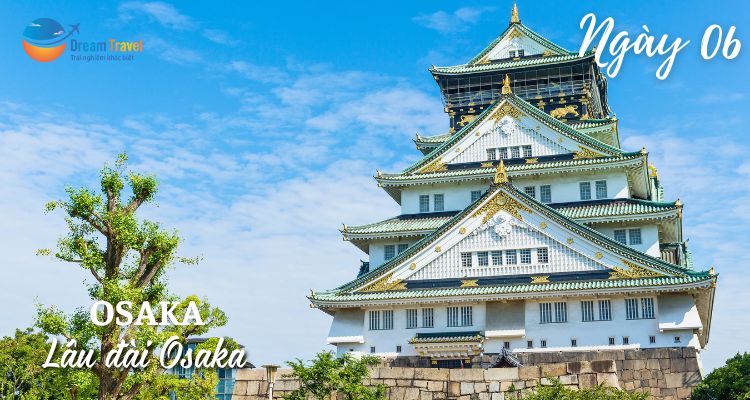 🌸 Lâu đài Osaka: Nguy nga, đồ sộ nằm trong khu thành cổ nổi tiếng bậc nhất Nhật Bản với những chi tiết mạ vàng và màu ngói xanh ngọc. Được xây dựng vào năm 1583 của gia tộc Toyotomi, lâu đài Osaka là biểu tượng của thành phố Osaka (chụp ảnh bên ngoài).