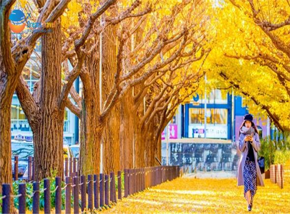 Vào tháng 10 - 15/11 hàng năm, những hàng cây bắt đầu chuyển lá vàng, khoác lên mình tấm áo rực rỡ, là thời điểm đẹp nhất trong năm để ngắm lá vàng tại đây.