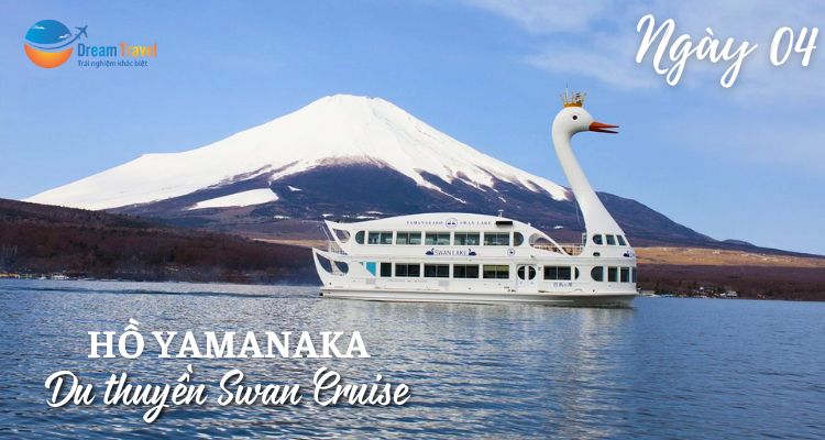 🏯 Du thuyền Swan Cruise ở hồ Yamanaka: Quý khách trải nghiệm du thuyền trên con thuyền hình thiên nga. Bên trong thuyền là không gian ấm áp với tone màu gỗ, trên thuyền ống nhòm được đặt ở khắp nơi, có ghế ngồi quan sát cho trẻ em (20 phút trên thuyền - Nếu điều kiện gió lớn không cho phép tàu hoạt động, tiền vé gửi lại khách hàng là 1000 Yên hoặc tặng 01 Softdrink vào bữa ăn tối).