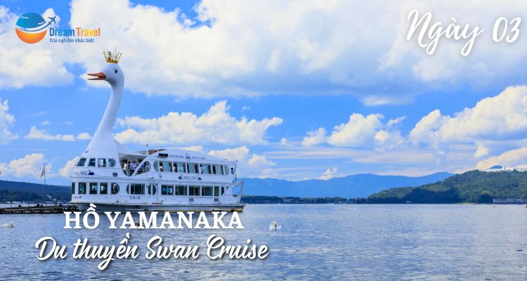 🌸 Du thuyền Swan Cruise ở hồ Yamanaka: Quý khách trải nghiệm du thuyền trên con thuyền hình thiên nga. Bên trong thuyền là không gian ấm áp với tone màu gỗ, trên thuyền ống nhòm được đặt ở khắp nơi, có ghế ngồi quan sát cho trẻ em (20 phút trên thuyền - Thuyền sẽ được thay đổi khi thời tiết không cho phép).