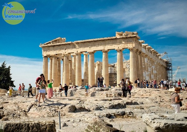 Đến Acropolis bạn sẽ được chiêm ngưỡng kỳ quan mang đậm dấu ấn nền văn minh cổ đại đó là Parthenon thờ nữ thần Athena, vị thần bảo hộ cho người dân Athens. Nằm trong quần thể kiến trúc Acropolis của Athens, đền được xây dựng năm 447 tới 432 trước công nguyên do hai kiến trúc sư nổi tiếng là Ichtinos và Calicrates thiết kế.